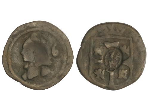 FELIPE V. Treseta. 1722. MALLORCA. AE. Con resello en reverso ovalo con tres flores de lys del bando de 1 agosto 1820. AC-Tipo 5. MBC-.