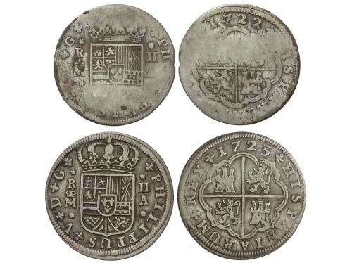 FELIPE V. Lote 2 monedas 2 Reales. 1722 y 1723. MADRID. A EX
