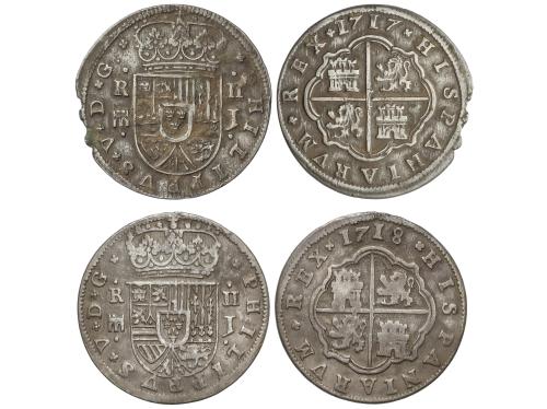 FELIPE V. Lote 2 monedas 2 Reales. 1717 y 1718. SEGOVIA. J.