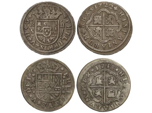 FELIPE V. Lote 2 monedas 2 Reales. 1718, 1722. SEVILLA. J. P