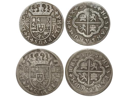 FELIPE V. Lote 2 monedas 2 Reales. 1723, 1725. SEVILLA. J. A