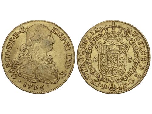 CARLOS IV. 8 Escudos. 1795. POPAYAN. J.F. 26,86 grs. (Pequeños golpecitos). AC-1667, XC-1058. MBC.