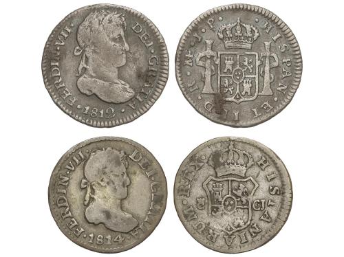 FERNANDO VII. Lote 2 monedas 1/2 Real. 1812, 1814. CADIZ C.J