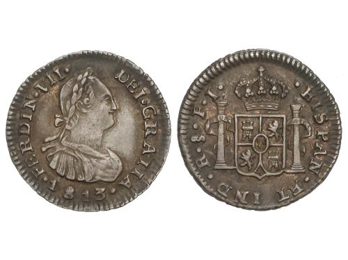 FERNANDO VII. 1/2 Real. 1813. SANTIAGO. F.J. 1,64 grs. Pátin