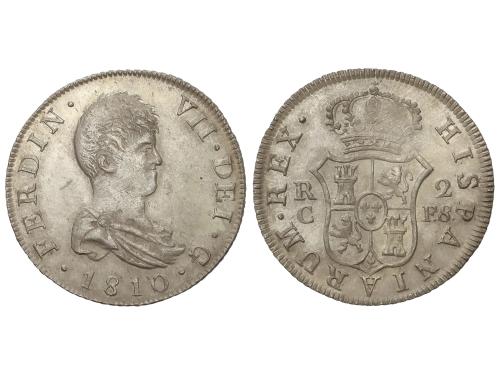 FERNANDO VII. 2 Reales. 1810. CATALUNYA. F.S. 5,58 grs. Brillo original. RARA ASÍ. AC-762. EBC+.