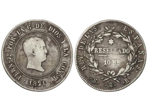 FERNANDO VII. 10 Reales. 1821. MADRID. S.R. 13,04 grs. Pátin