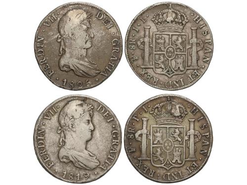 FERNANDO VII. Lote 2 monedas 8 Reales. 1819 y 1825. POTOSÍ.