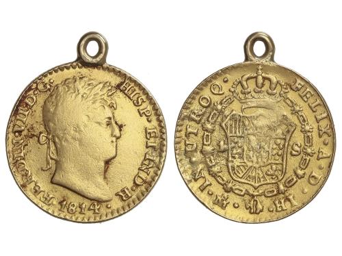 FERNANDO VII. 1 Escudo. 1814. MÉXICO. H.J. 3,37 grs. Con anilla. AC-1515. MBC-.