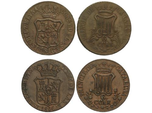 ISABEL II. Lote 2 monedas 6 cuartos. 1846. BARCELONA. Flores