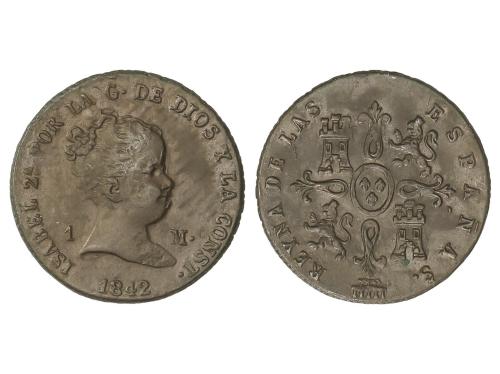 ISABEL II. 1 Maravedí. 1842. SEGOVIA. 1,61 grs. Pátina. AC-35. EBC-.
