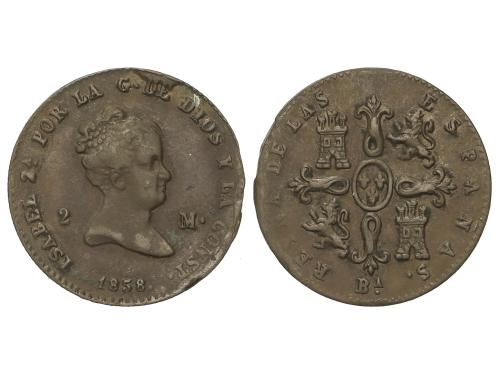 ISABEL II. 2 Maravedís. 1858. BARCELONA. 2,27 grs. AC-37. MB