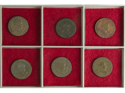 ISABEL II. Lote 6 monedas 4 Maravedís. 1837, 1845, 1846, 184
