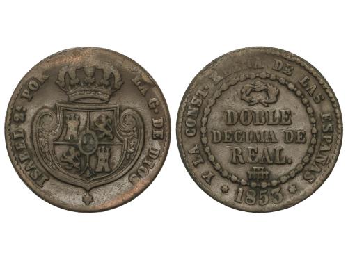 ISABEL II. Doble Décima de Real. 1853. SEGOVIA. 7,27 grs. ES