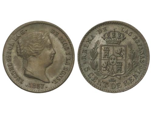 ISABEL II. 5 Céntimos de Real. 1857. SEGOVIA. 1,65 grs. Páti