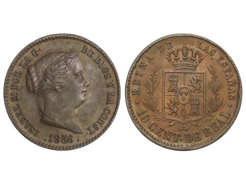 ISABEL II. 10 Céntimos de Real. 1856. SEGOVIA. 4,06 grs. Pátina. AC-172. EBC.