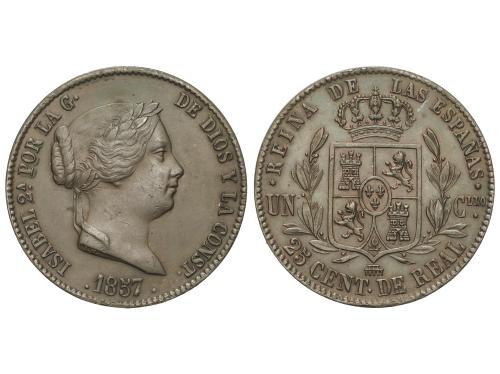 ISABEL II. 25 Céntimos de Real. 1857. SEGOVIA. 8,84 grs. Pát