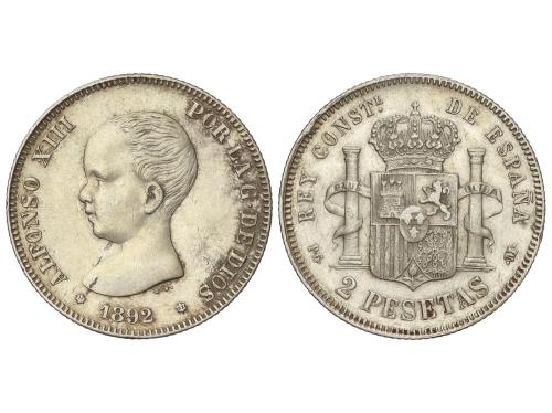 ALFONSO XIII. 2 Pesetas. 1892 (*18-92). P.G.-M. MBC.