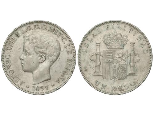 ALFONSO XIII. 1 Peso. 1897. MANILA. S.G.-V. (Golpecitos y ra