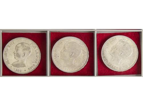 ALFONSO XIII. Lote 3 monedas 5 Pesetas. 1888 y 1898. 1888 (*