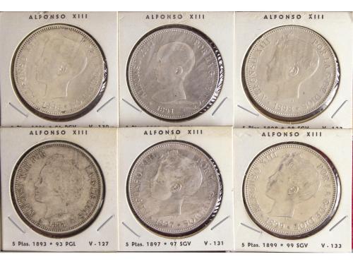 ALFONSO XIII. Lote 14 monedas 5 Pesetas. 1888 a 1899. Todas