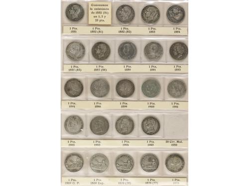 LOTES CENTENARIO. Lote 23 monedas 1 Peseta. 1869 a 1905. GOB