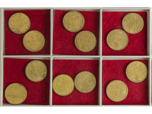ESTADO ESPAÑOL. Lote 50 Pruebas de Máquina de 1 Peseta. 1948. NAVAL. TALLERES SAN CARLOS. Reverso coincidente. A EXAMINAR. HG-267a. EBC a SC.