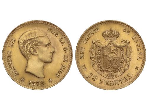 REACUÑACIONES OFICIALES. 10 Pesetas. 1878 (*19-62). D.E.-M. 3,21 grs. AU (900). (Limpiada). AC-168. EBC+.