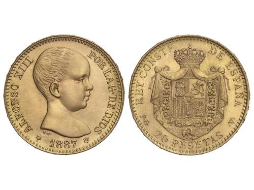 REACUÑACIONES OFICIALES. 20 Pesetas. 1887 (*19-62). P.G.-V. 6,44 grs. AU (900). AC-171. SC.