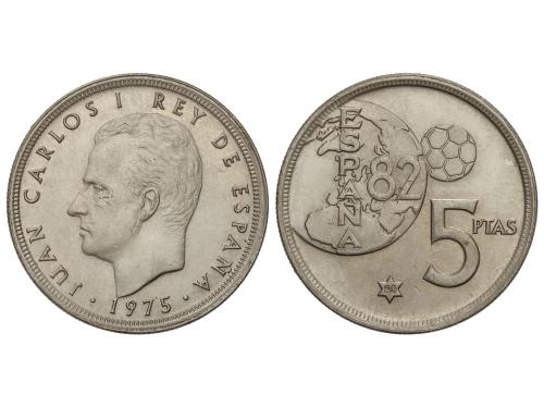 JUAN CARLOS I. 5 Pesetas. 1975 (*80). ERROR del Mundial. AC-40; HG-388a. SC.