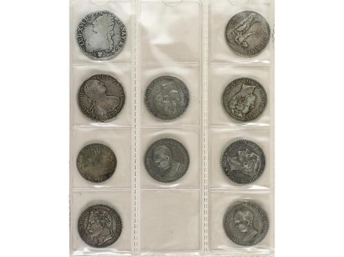 LOTES y COLECCIONES. Lote 10 monedas. 1788 a 1896. AR. Incluye 2 monedas Carlos IV: 4 Reales 1807 Potosi, 8 Reales 1797 México 1797. 2 monedas FRANCIA: Ecu LOUIS XVI 1788-I, 5 Francs NAPOLEON III 1867. 6 monedas 5 Pesetas 1870, 71 (*74), 79, 88, 90, 96. A EXAMINAR. BC a MBC+.
