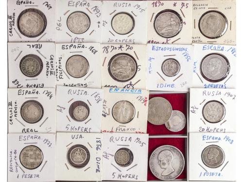 LOTES y COLECCIONES. Lote centenares de monedas. MONARQUÍA HISPÁNICA a MONEDA EXTRANJERA. AR, AE, Cuni, Latón. Incluye moneda de plata de pequeño módulo de monarquía española (busto y columnario), centenario de la peseta, Estado Español y Juan Carlos. También bastante moneda extranjera circulante. IMPRESCINDIBLE EXAMINAR. BC a PRUEBA.
