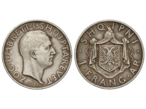 ALBANIA. 1 Franga Ar. 1937. ZOG I. 4,97 grs. AR. KM-16. EBC.