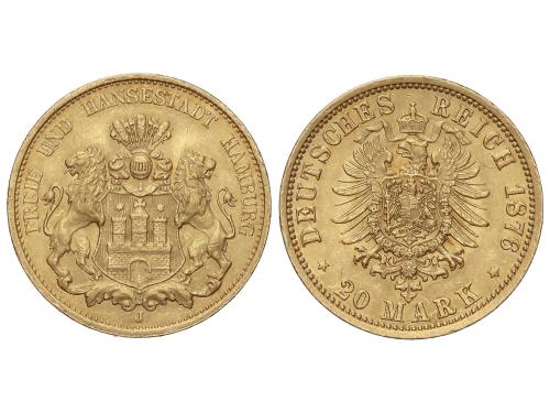 ESTADOS ALEMANES. 20 Mark. 1876. HAMBURG. 7,94 grs. AU (900)