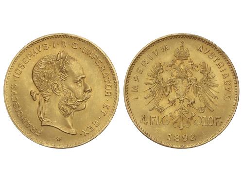 AUSTRIA. 4 Florin-10 Francs. 1892. FRANZ JOSEPH I. 3,22 grs.
