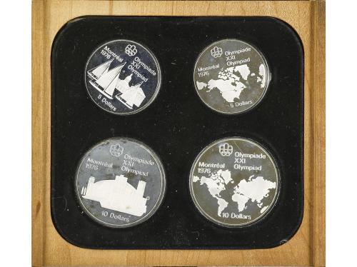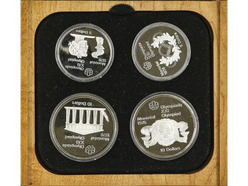 CANADÁ. Lote 32 monedas 5 (16) y 10 Dollars (16). 1973 a 1976. AR. Olimpiada Montreal´ 76. Serie no completa. En estuches con certificados. Incluye 1 Ecu 1989 en estuche con certificado. SC y PROOF.