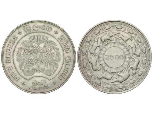 CEYLÁN. 5 Rupees. 1957. 28,14 grs. AR. 2500 años del Budismo