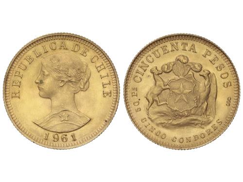CHILE. 50 Pesos. 1961. 10,15 grs. AU (900). Fr-55; KM-169. S