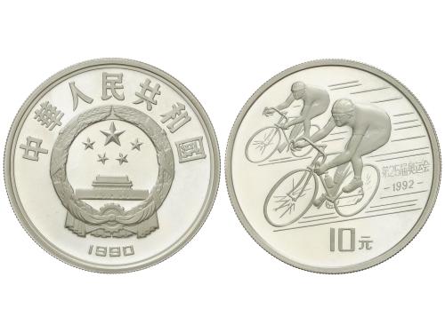 CHINA. 10 Yuan. 1990. 29,90 grs. AR. Olimpiada Barcelona´ 92: Ciclismo. KM-300A. PROOF.
