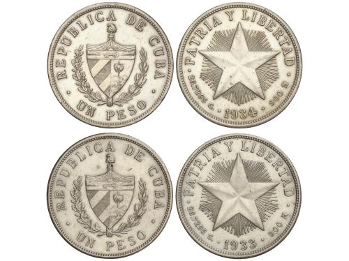 CUBA. Lote 2 monedas 1 Peso. 1933 y 1934. AR. Tipo Estrella.