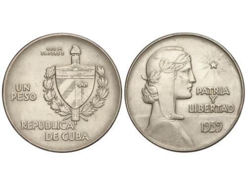 CUBA. 1 Peso. 1939. 26,55 grs. AR. Tipo ABC. KM-22. MBC+.