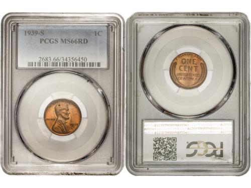 ESTADOS UNIDOS. 1 Cent. 1939-S. SAN FRANCISCO. Encapsulado por Encapsulada por PCGS MS 66 RD (n. 2683.66/34356450). Br. Lincoln Cent. KM-132. SC.