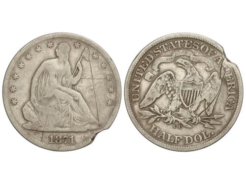 ESTADOS UNIDOS. 1/2 Dollar. 1871-CC. CARSON CITY. AR. Seated Liberty. (Cospel faltado, rayas). RARA. KM-99. MBC-.