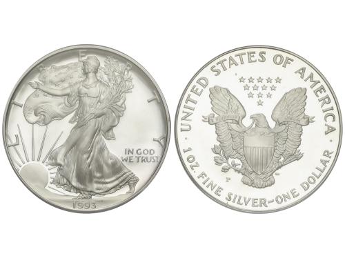 ESTADOS UNIDOS. 1 Dollar. 1993-P. PHILADELPHIA. Encapsulado por Encapsulada por PCGS PR68DCAM (n. 9867.68/21884106). AR. Walking liberty. KM-273. PROOF.