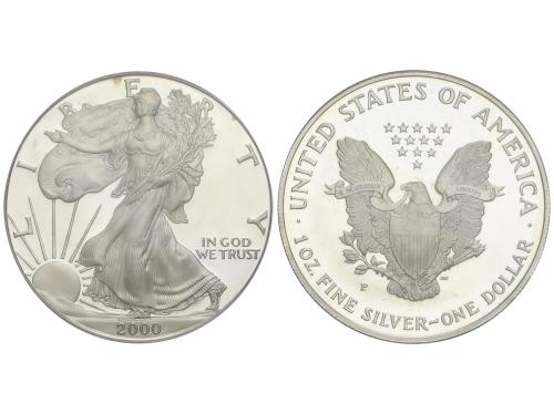 ESTADOS UNIDOS. 1 Dollar. 2000-P. PHILADELPHIA. Encapsulado por Encapsulada por PCGS PR69DCAM (n. 99949.69/24504079). AR. Walking liberty. KM-273. PROOF.