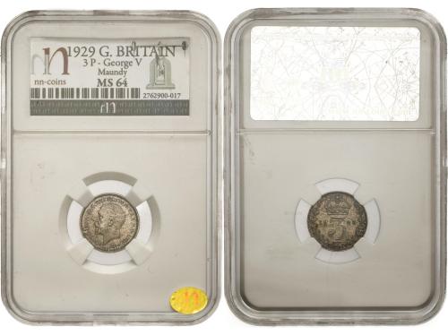 GRAN BRETAÑA. 3 Penny. 1929. GEORGE V. Encapsulado por Encapsulada por NN COINS MS 64 (n. 2762900-017). AR. Procedente de Maundy set. KM-839. SC.