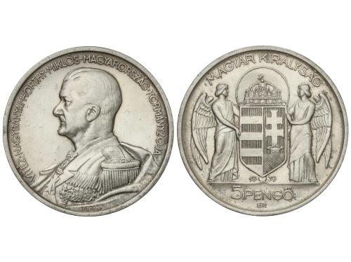 HUNGRÍA. 5 Pengo. 1939. 24,99 grs. AR. Almirante Horthy. KM-517. EBC+.