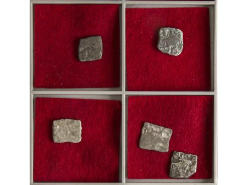 INDIA. Lote 5 pequeños lingotes de plata o Karshapana. (321-185 a.C). DINASTIA SUNGA. IMPERIO MAURYA. 1,49 a 2,21 grs. AR. Cospel cuadrado. A EXAMINAR. BC+.
