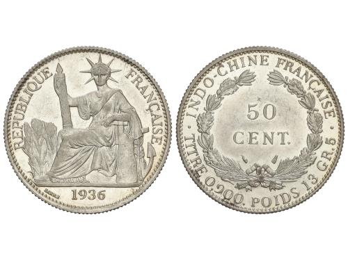 INDOCHINA FRANCESA. 50 Cents. 1936. 13,51 grs. AR. (Golpecit