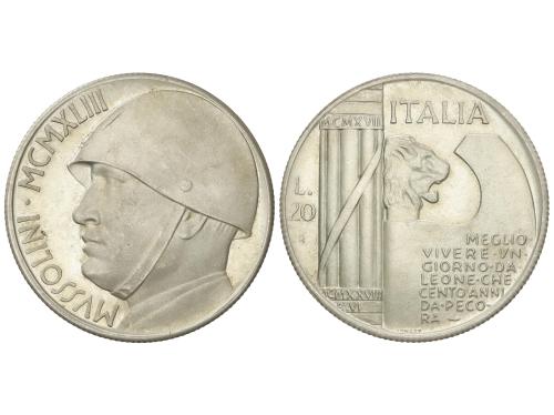 ITALIA. 20 Lire. 1928 (1970). 16,48 grs. AR. Mussolini. Moneda de Fantasía. Bruce-X-2. PROOFLIKE.