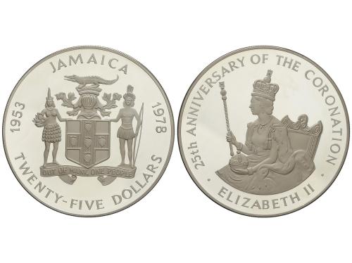 JAMAICA. 25 Dollars. 1978. ELIZABETH II. 135,89 grs. AR. 25 aniversario coronación Isabel II. En estuche original con certificado. KM-76. PROOF.